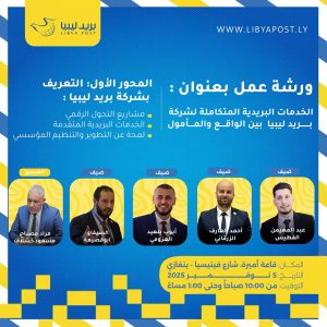 13 نوفمبر، 2025 توقيع عقد بين شركة بريد ليبيا و الشركة الليبية السريعة للنقل الجوي طرابلس – ليبيا | 13 نوفمبر 2025 إقرأ المزيد